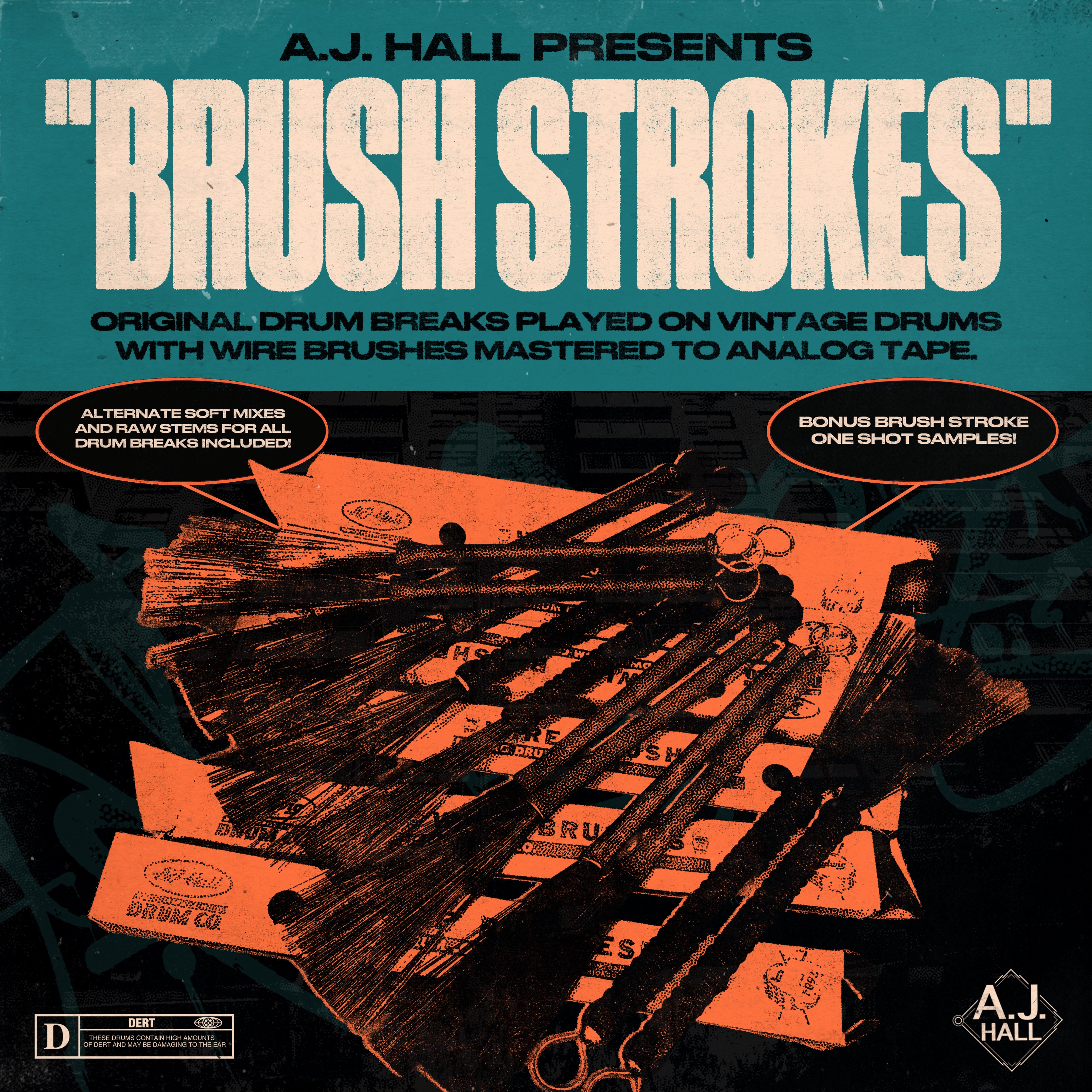 A.J. Hall presents - "BRUSH STROKES" - 100% organic drum breaks & drum one shots played with wire brushes on vintage drums & analog tape.